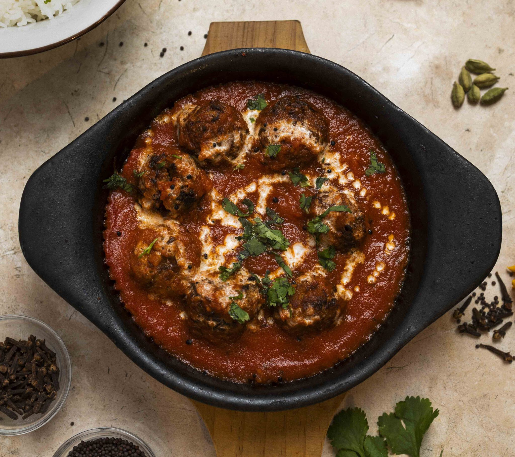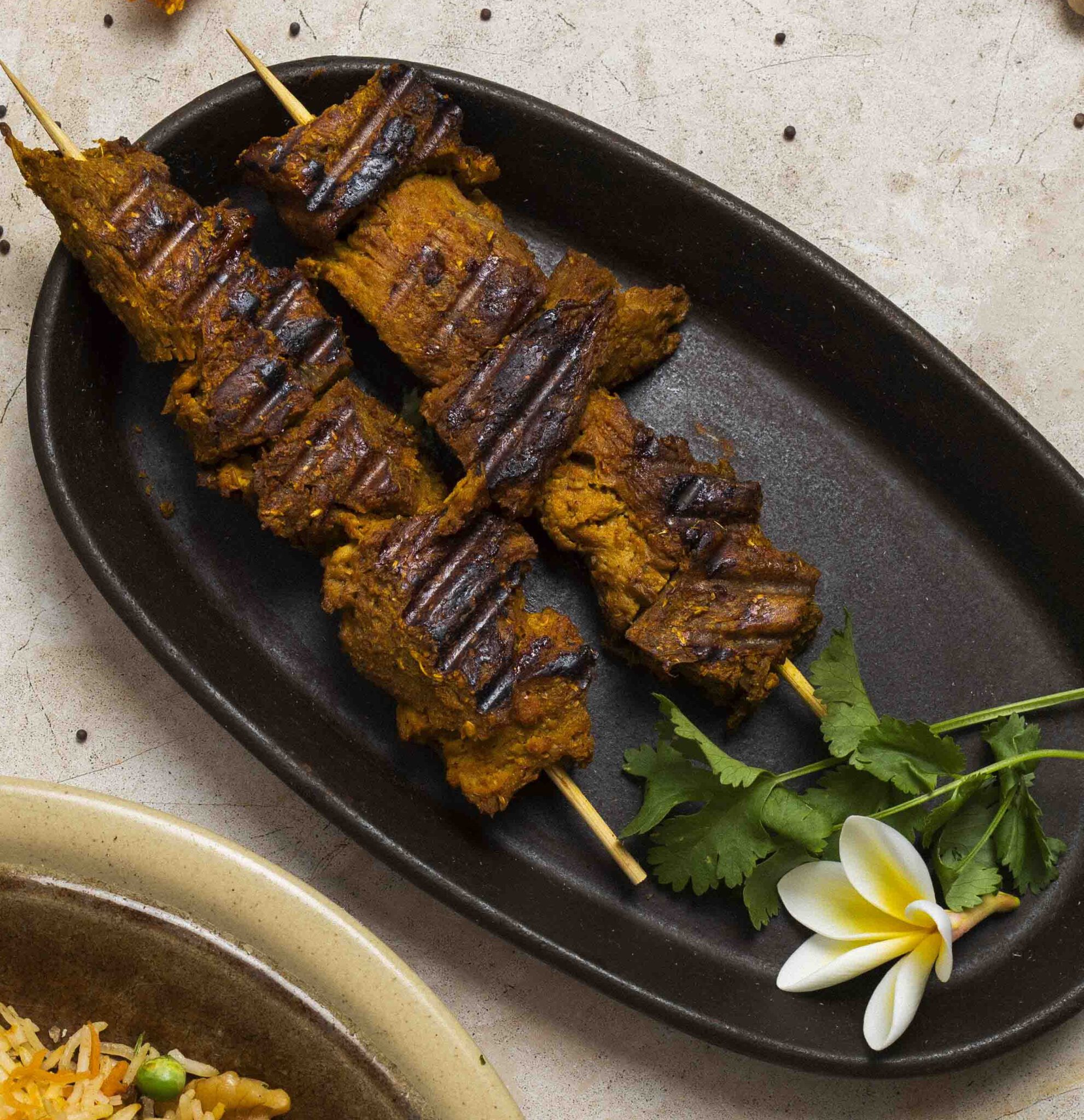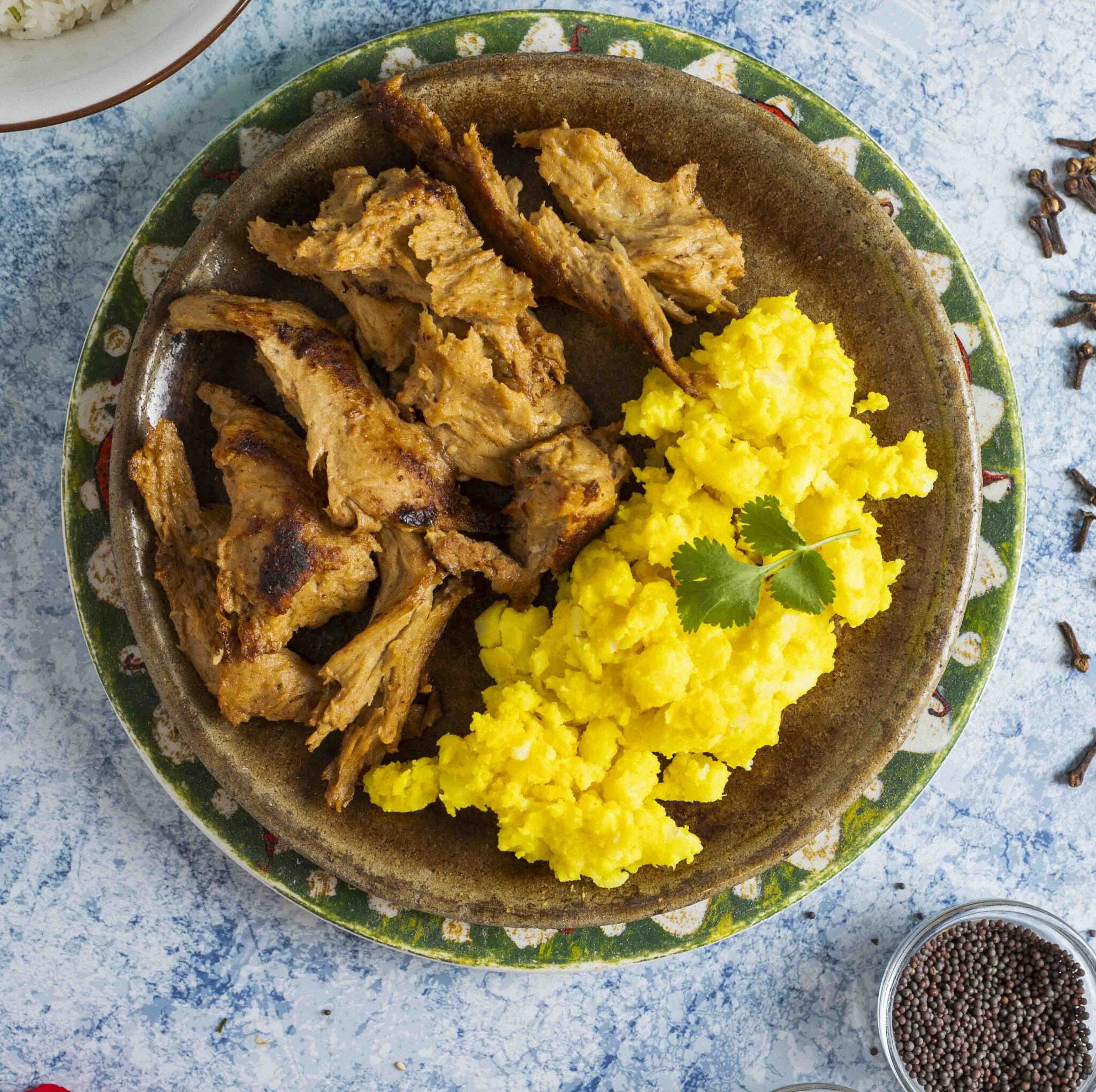 Queso fresco en crema de harina de garbanzos, frito y espolvoreado con chat masala.