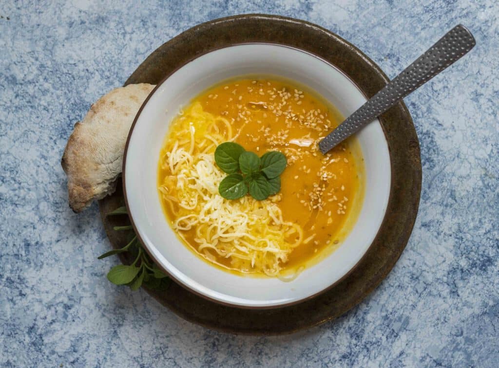 Cremoso pure con sésamo y queso.
